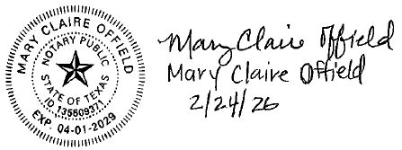 IN WITNESS WHEREOF, the undersigned has caused this Power of Attorney to be executed as of this 24th day of February, 2026.